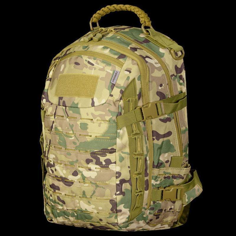 Кілька примірників у наявності Тактичний рюкзак TrooperBag створений спеціально для військових та воєнізованих підрозділів, що продумано у всіх елементах конструкції. Завдяки своїй конструкції та особливостям, цей рюкзак стане вашим надійним супутником у будь-яких умовах. Рюкзак виготовлений з міцної тканини Oxford 900D - це міцний, зносостійкий синтетичний матеріал, який має особливе плетіння. Матеріал стійкий до розривів і навантажень. Також тканина має PVC напилення, яке захистить ваші речі від вологи, пилу та бруду. Сам рюкзак має ергономічну форму та зручно ляже по вашій спині. Спинка рюкзака обладнана жорсткою конструкцією з анатомічними м'якими вставками, що допомагає рівномірно розподіляти вагу і зменшити навантаження на спину та плечі. Завдяки тому, що вставки не суцільні - повітря буде ефективно циркулювати між рюкзаком та спиною, що запобіжить вашому запріванню. Додаткові стропи на поясі та грудях надійно зафіксують рюкзак на вашому тулубі та гарантують стабільне положення рюкзака навіть під час інтенсивних рухів. Загальний об'єм рюкзака досягає 35 літрів, забезпечуючи достатньо місця для вашого спорядження. Два великих відділення дозволяють організувати зберігання ефективно, а регульовані стропи на боках і знизу дозволяють змінювати об'єм рюкзака в залежності від потреб і також чіпляти додаткове спорядження або каримат. Рюкзак має багато практичних деталей. Передня частина оснащена системою кріплення MOLLE (створену за технологією Laser Cut), що дозволить вам вчепити додаткове спорядження і підсумки для збільшення функціональності, а також прошиті петлі на передній частині також дають змогу чіпляти додаткове спорядження та аксесуари. Спереду є невелике відділення для дрібних речей з липучкою під патчі та шеврони. Ручка перенесення рюкзака виконана з плетеного паракорду, який можна розплести й використати за потреби. По боках є кишені с застібкою на липучці, які ідеально підходять для дрібниць або пляшок з водою і регулюються за допомогою блискавок. З TrooperBag ви отримуєте надійну річ, яка не підведе вас навіть в екстремальних ситуаціях. Тканина: Oxford 900D PVC Склад: 100% поліестер Розміри (см): 26 х 29 х 50 Об’єм: 35 л