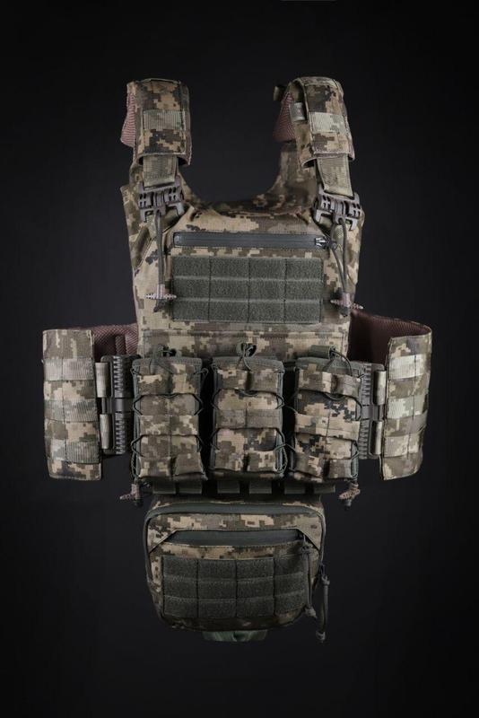 Кілька примірників у наявності В комплекті плитоноска 1 шт 3 шт підсумки під АК (14*8.5*3.5) - розтягуються в ширину і товщину 1 шт. напашник (22*15.5*5.5см) Плитоноска бокові кармани під балістичні пакети з політелену 15*20 см або 15*30 см Плитоноска під плити 30*25 см Плитоноска надміцна вологостійка Cordura 1000 D все прошите армовані нитками з'ємні 3 підсумка під БК на системі Molle в 1 підсумок поміщається 2 ріжка під АК з системою подвійного швидкого скидання, посилений демпфер на грудях, спині та плечах плечеві лямки регулюються по висоті з можливістю швидкого скидання камербанд регулюється під будь-який об'єм попереду ліпучками, на спині резинкою, система Molle по всій поверхні, водонепроникний карман на грудях на змійці для особистих речей або документів, ручка на спині для евакуації. Якість-ТОП ! Напашник Cordura 1000D Унизу 2 гумки для турнекету Розмір 22*17*6 см 3 відділення Можливо встановити балістичний пакет 20*13.5*16.5