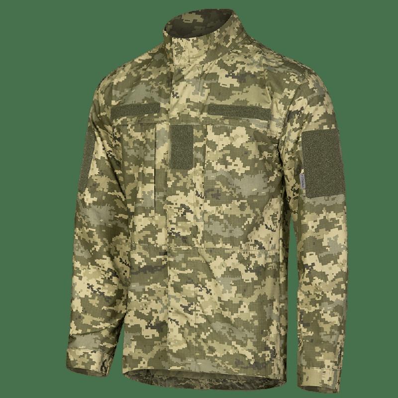 Кілька примірників у наявності Формений кітель для військових підрозділів з якісної та зносостійкої тканини. Розроблявся спеціально для виконання тактичних задач в теплий сезон. * * * Кітель вироблено з тканини Rip-Stop CVC. Це суміш поліестеру та бавовни. Дихаюча, зносостійка, гіпоалергенна тканина, що має у своєму плетінні армовану нитку, яка додає зносостійкості та запобігає поширенню розривів матеріалу. * * * Кітель вироблено в сучасному мілітарі дизайні, має ергономічний крій, з урахуванням анатомії людини. Застібається застібкою блискавкою до самого підборіддя. Сама застібка має захисний клапан на липучках. Комір і манжети регулюються і фіксуються липучками. На грудях присутні дві, містких кишені на застібках-блискавках, з вентиляційною сіткою з внутрішньої сторони. Додатково на рукавах та грудях присутні липучки під id-патчі, шеврони та погон. По низу куртки присутній тунельний пояс, через який проходить спеціальна резинка на липучках що дозволяє регулювати об’єм кітеля. * * * Тканина: Rip-Stop CVC Склад: 65% бавовни, 35% поліестеру Температурний режим: від +15°C до +25°C Додаткові параметри: • Розмір: XL • Колір: ММ14 • Одяг: Кітель Інше: Кітель Колір: ММ14 Призначення: Військова форма, Тактичний одяг