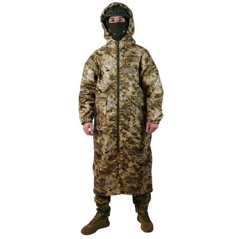 Тип одягу: Плащі Кілька примірників у наявності Тактичний плащ-дощовик Kiborg це - легкий і багатофункціональний захист людини та її спорядження від сильного, холодного вітру, дощу, снігу та іншої негоди. Забезпечує відмінне маскування в лісових або степових місцевостях. Плащ виконаний з тканини Oxford 115 г/м, яка має захисні властивості: -водонепроникність; -здатність відштовхувати бруд та воду; -відмінне маскування; -володіє високою міцністю і зносостійкістю. Плащ має капюшон на резинці, яку можна регулювати під ваші потреби, на капюшоні наявні 2 регулятора. Досить об'ємний капюшон, що дозволяє його одягати поверх шолому. Шви на плечах та шиї прошиті на спеціальній ультразвуковій машині, це робить плащ надійнішим у порівнянні з дощовиками прошитими звичайною ниткою. У манжети вшита резинка, яка зручно сидить на запʼясті не перетискаючи його. Застібка з переду має подвійний бігунець, щоб було комфортніше защібати і розщібати його. Спереду розміщені 2 великих кармани для розміщення мілких речей (телефону, ключів, тощо). Довжина плаща нижче колін надійно захистить вас та ваш одяг від бруду. Ідеально в комплекті з гамашами нашого виробництва. Особливістю дощовика є те, що він має ззаду потаємний карман в який ви можете скласти компактно дощовик і переносити його як спорядження на карабіні або в рюкзаку. Легкий, зручний плащ-дощовик від виробника Кiborg - це надійність, якість та комфорт. Обирай Українське! Власне виробництво. Є опт. Артикул: 1158 Артикул моделі: 1158 Назва модифікації: Плащ-дощовик довгий Kiborg піксель Колір: Піксель