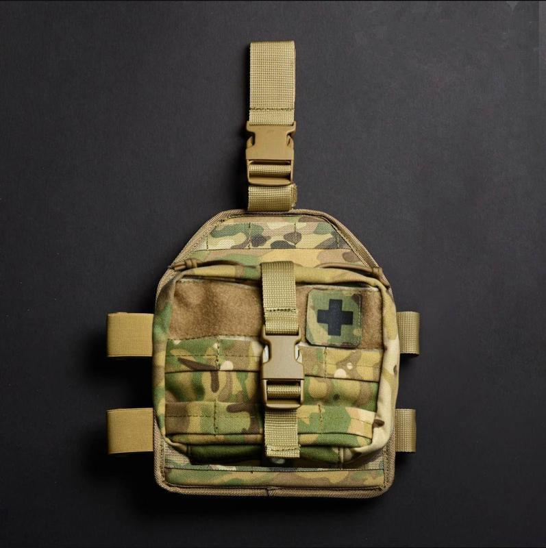Кілька примірників у наявності В комплекті 1.Платформа на стьобно 2.Аптечка Платформа на стегно з системою кріплення MOLLE. Платформа обладнана трьома точками кріплення - до поясу та 2 навколо стегна. Передбачене регулювання по висоті і обєму, що забезпечує якісну підгонку за розміром і зручність в експлуатації , також для фіксації підігнаного розміру є застібки з Велкро. На платформу нашито 5 строп системи MOLLE для кріплення різного спорядження і підсумків. На внутрішній частині нашита сітка для поліпшення вентиляції. На дану платформу можна закріпити будь – які підсумки що кріпляться за допомогою системи MOLLE. Тканина — Cordura 1000D NIR USA MilSpec (PU, NIR, DWR) (Multicam) Стропа – Поліамід ( Multicam ) , Поліамід Фурнітура – WOOJIN Plastic (Ацетал) Характеристики: 1.Повністю модульна набедренна панель 2.Перший панель MOLLE 3.Може бути розміщена як справа так і зліва 4.Повністю регульована защібка-липучка 5.Ремінь на поясі з великим швидкозємним фастексом та велкро-застібкою для фіксації розміру 6.Два ремені для фіксації навколо ноги з еластичною частиною , швидкозємним факстексом та велкро-застібкою для фіксації розміру. 7.Розмір : Ш. 22см х В. 27см 2.Аптечка Тактичний підсумок який стане незамінним при наданні першої медичної допомоги. Складається з двох части : Сумка IFAK , та жорсткої Velcro панелі з MOLLE модулем який кріпиться на будь – яке MOLLE сумісне спорядження . Сама сумка кріпиться до бази за допомогою Velcro панелі та фіксується за допомогою строп з фастексом , які міцно зафіксовані на базі. Також всередині по всьому підсумку протягнутий еластичний шнур , що надає змогу фіксувати нижню частину у відкритому стані. Для більш швидкого відкривання ми додали міцно зафіксований хлястик який виходить на зовні з кільцем. На зовнішній частині підсумка також є MOLLE інтерфейс та Velcro липучка для патчів та ідентифікаторів. Характеристики: 1. Тканина Cordura 1000D NIR USA MilSpec (PU, NIR, DWR) (Multicam) 2. Надійній еластичний шнур Spandex Line USA 4мм 3. Надміцна фурнітура WOOJIN Plastic Корея (Ацетал) 4. Система кріплення MOLLE 5. Розміри : Висота:17 см. Ширина:15 см. Глибина: 8 см. Матеріал: Cordura Розмір: .