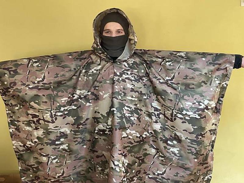 Тип одягу: Плащі Кілька примірників у наявності Дощовик Панчо можна використовувати як намет накриття.По бокам має по три металічні кнопки.Також пришиті по кутах шнурки для натягування. Тканина повністю водонепроникна Оксфорд 210 дуе міцна на розрив з пропиткою. Розмір універсальний. Технічний розмір в розложиному стані 140см на 200см капюшон під каску на резинці під затяжку.Також до нього йде сумка яка кріпиться на пояс або до системи моллі. Тканина Склад: 100% пе. Покриття — PU 4000. Щільність: 210 г/м2. Розмір у чохлі 10 см/30см Розмір: .