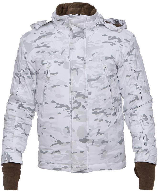 Кілька примірників у наявності VAV WEAR Kolt 30 — утеплена тактична куртка з подовженою спинкою для тренувань і виконання бойових завдань в екстремальних умовах, а також для занять активними видами зимового спорту. Модель виготовлена з міцного змішаного матеріалу (поліестер 95%, еластан 5%), посиленого армованою ниткою, що забезпечує підвищену стійкість до стирання та розривів. Матеріал має водо- і брудовідштовхувальні властивості, а як утеплювач використовується високоякісне синтетичне волокно. Куртка VAV WEAR Kolt має дві місткі нагрудні кишені на блискавці з флісовим покриттям усередині, три кишені на блискавках на руках і дві внутрішні сітчасті кишені на блискавці. Всі зовнішні блискавки виготовлені ламінованими. Основна блискавка з функцією захисту підборіддя обладнана подвійним клапаном на кнопках, що запобігає потраплянню вологи та задуванню вітру всередину. Куртка має високий комір-стійку з флісовим покриттям усередині та регульований капюшон, який у разі непотрібності, можна заховати в приховану кишеню на блискавці на комірі. Крім того, куртка має еластичний вітрозахисний клапан усередині, який щільно прилягає до тіла та захищає від потрапляння снігу, вологи та холодного повітря всередину, а також внутрішні подовжені трикотажні манжети з отворами для великого пальця. Щільність прилягання регулюється за допомогою клапанів на липучках на манжетах і еластичної стропи з фіксаторами на подолі. На руках розміщені платформи для кріплення шефронів і патчів. Куртка VAV WEAR Kolt 30 представлена в кольорі білий мультикам. Країна виробник: Туреччина Сезон: Зима Колір: Білий Артикул:: KOLT30 White Multicam 3XL Верхній одяг:: Куртки Категорія: Одяг та спорядження Мoдель: Куртка Kolt 30 White Multicam Матеріал: Поліестер, Еластан Подкатегория:: Верхній одяг Стать: Чоловіча Розмір: 3XL