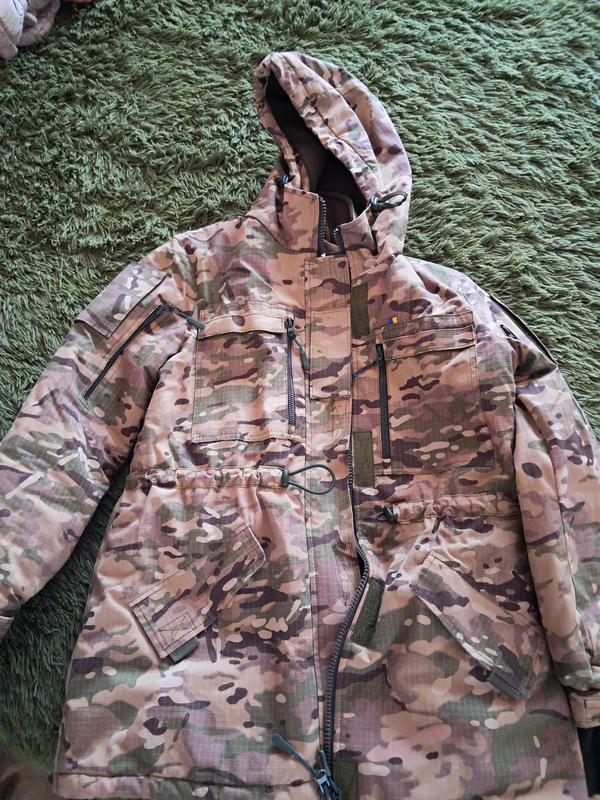 Тёплый женский комплект формы на флисе. Цвет мультикам. Подойдёт на 42-46. Куртка одевалась несколько раз, штаны не одевались. Много карманов, манжет для руки с отверстием для большого пальца, поэтому руки всегда будут в тепле