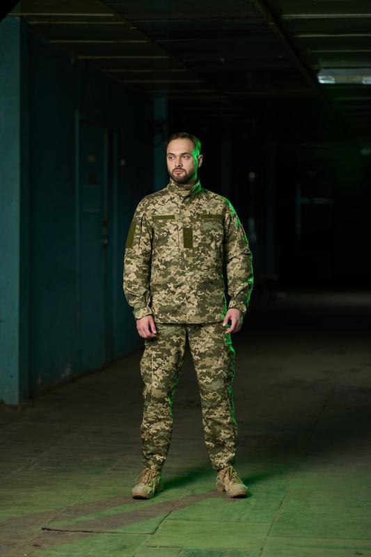 Куртка: - Материал: рип стоп - Для дополнительной защиты молния находится под клапаном. - Клапан над молнией фиксируется липучками. - Есть карманы на рукавах - Также на локтях есть "карманы" для установки протектора (с костюмом в комплекте не поставляются) - На груди справа и слева есть по два кармана - Липучки для шевронов располагаются на груди и на рукавах - Рукав фиксируется липучкой. - Капюшон отсутствует. Штани: - Материал: рип стоп. - В изделии 6 карманов: 2 прорезных и 4 боковых на липучках. - На коленях есть "карманы" на липучках для установки протектора (с костюмом в комплекте не поставляются) - Пояс на пуговице и ширинке. Есть шлейки под ремень и липучки, которые позволяют подтянуть пояс под свой размер талии. - Внизу штаны стягиваются с помощью липучки. арт11