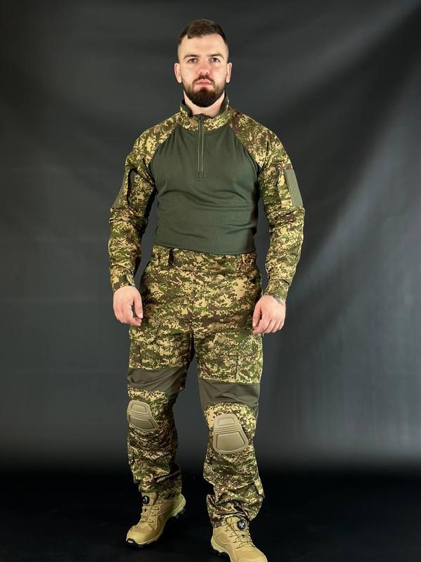Комплект G3 R&M Хижак Артикул: 01257 Размеры: s-xxl Мужские тактические брюки мультикам со вставными наколенниками и эластичными вставками в области колен сочетают удобство и функциональность. Удобный анатомический крой не сковывает движения. Брюки выполнены из высококачественного и прочного материала Рипстоп. Состав ткани: (65% полиэстер, 35% хлопок). Характеристики: много карманов для хранения; износостойкие, быстросохнущие, легко моются; удвоенная ткань на коленях; наколенники регулируются по высоте; лямки для ременя эластичные вставки в области коленей и поясницы убакс Характеристики: Цвет: оливковый+хишак Застежка молния под горло Платформы велкро для шевронов Дополнительные карманы на рукавах Липучки на манжетах Карманы для налокотников Сезон: демисезон Производитель: Украина Тактическая боевая рубашка Ubacs (Убакс) из "умной" ткани CoolMax приятна на ощупь и не сковывает движений. Современное окрашивание Хижак было разработано и протестировано на разных участках и в разное время суток. Сочетание пятен разного размера позволяет быть не заметным. Превосходит известный американский камуфляж Multicam. Рукава изготовлены из прочного материала рип-стоп. На рукавах есть карманы, которые застегиваются с помощью молнии, на карманах расположены панели велкро. Манжеты регулируются с помощью липучки и удобно садятся на запястье. На локтях есть карманы на липучках для налокотников. Корпус изготовлен из 100% Инновационного материала coolmax, который позволяет коже дышать и впитывает в себя воду. За счет разницы температур влага, выделяемая кожей, не впитывается кулмаксом, а движется, испаряясь. Оригинальный дизайн рубашки дает возможность носить ее в гражданских целях, поэтому очень часто такие тактические рубашки используются рыболовами, охотниками, туристами и многими другими любителями комфортной одежды.