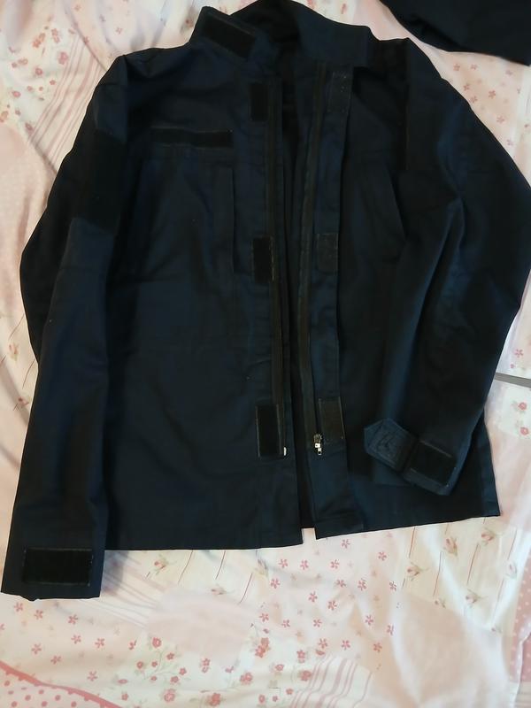 Костюм темно синего цвета. Размер 48. Одевался раз 5. Манжети на липучках, кармани на замках.