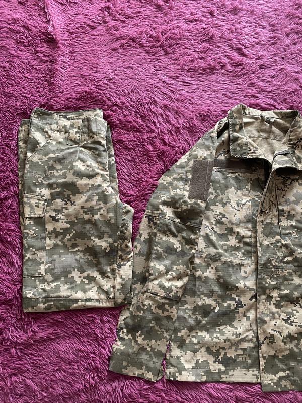 Підліткова камуфляжна форма для проходження військових занять . Купляли на 10-11 клас Стан ідеальний Розмір М Заміри : Штани Довжина 100 см Ширина штанки 30 см Пів обхват пояса 45 см Пів обхват стегон 52 см Внутрішній шов 77 см Куртка кітель Плечі 47 см Рукав 65 см Обхват грудей 54 см Довжина 70 см