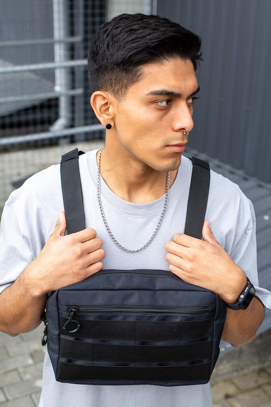 Розміри: 30/21/6 див. Матеріал: міцний і водонепроникний 100% поліестер. Нагрудна Сумка від Without зберігає свою первісну форму не піддаючись деформації, а унікальний дизайн виділить вас з натовпу. Ремінні стропи тримаються за допомогою прямокутника окантованной сітки. Сумка має 2 відділення, які захищені металевими застібками. На бігунках встановлені пуллеры для зручності відкривання замку. Потайна кишеня всередині, збереже ваші цінності від небажаних очей.