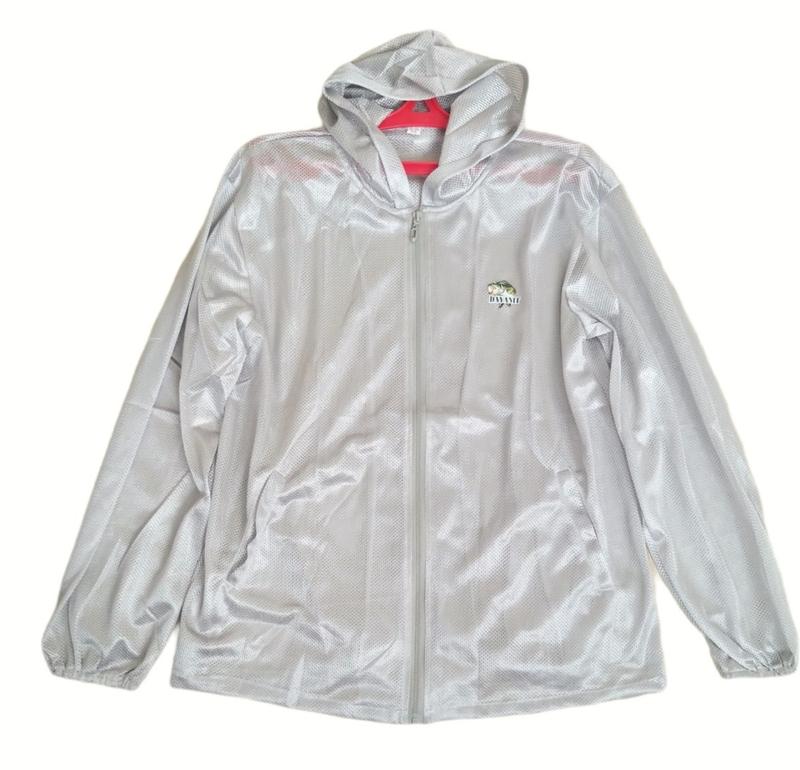 Легкая куртка-сетка с капюшоном и карманами для летнего периода. Мужская/женская, на змейке. Размер универсальный (48-54). Длина куртки по спинке 70 см, длина рукава 60 см. Подходит для жаркой погоды как защита от солнечных лучей и от насекомых. Легкая - вес всего 180 грамм. Очень компактно складывается в небольшой пакет (размер пакета 23*16 см). Цвет - светло-серый металлик. Незаменимая вещь для рыбалки в летний период.