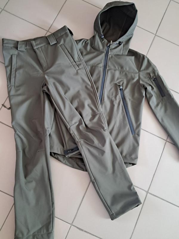 Костюм выполнен из ткани SoftShell. Это легкая, современная, мембранная ткань, которая состоит из трех слоев: микрофлис который сохраняет тепло; мембрана защищающая от ветра и влаги; эластичный полиэстер с влагостойкой пропиткой, которая защищает от пыли, грязи и влаги. Костюм легкий, дышащий, имеет эргономичный крой с учетом анатомии человека, благодаря чему не сковывает движений, достаточно удобный и комфортный