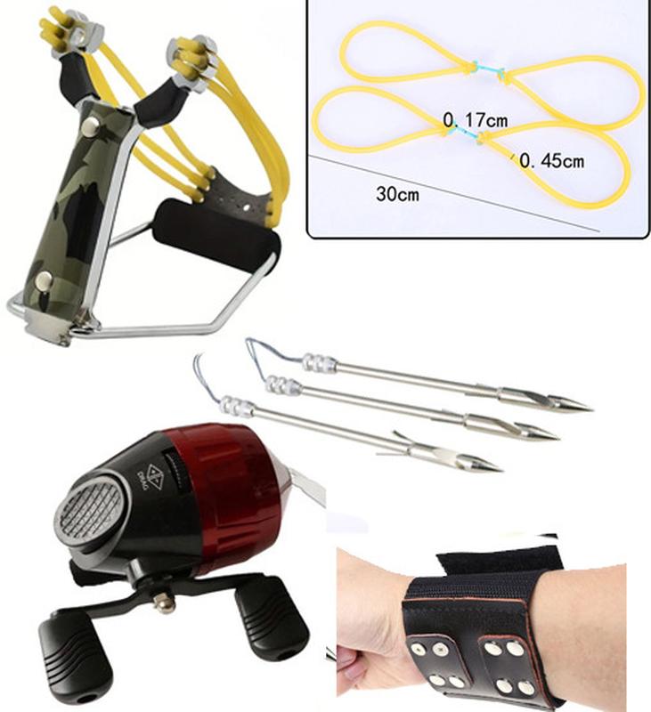 В набор входят: Рогатка пластиковая, катушка, запястник (держатель рогатки), 3 гарпуна (дротика), 2 резинки под стрельбу дротиком, 1 резинка под стрельбу шариком.