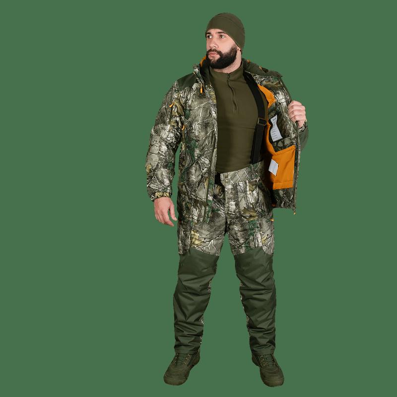 Мисливський костюм Hitpoint - це симбіоз тактичного і туристичного одягу. Справжня знахідка для полювання в несприятливих погодних умовах, навіть при -25 градусів. В подарунок до костюма ми надаємо якісне вологостійке пончо, з яким можна повністю забути про погану погоду. * * * Сам костюм вироблено зі зносостійкої, мембранної тканини StormWall. Матеріал, який плететься своєрідними сотами із brush обробкою (мікроворсинки). На дотик та по структурі схожий до велюру. В середі мембранна, а з внутрішньої сторони гладкий, зносостійкий поліестер. Тканина має високий рівень захисту віт вологи та вітру. Костюм має синтетичний утеплювач. Також утеплювач присутній в каптурі та спинці штанів. На куртці та штанях в зонах підвищеного навантаження присутні накладки зі зносостійкої кордури. * * * Костюм має продуманий, ергономічний крій. Його зручність полягає в тому що за потребою напівкомбінізон можна з легкістю перетворити у звичайні штани. Просто відстебнувши спинку. Куртка з каптуром. Центральна застібка має подвійну собачку, для регулювання закритої зони. Манжети фіксуються резинками. Каптур — утеплений, з синтетичним наповнювачем. Дуже зручний, не заважає огляду, а також легко регулюється. Всі зовнішні кишені оснащені пулерами для роботи з ними в рукавичках. Куртка має: дві внутрішніх кишені, дві загальні кишені спереду, дві кишені на рукавах і ще одну додаткову біля манжета на лівому рукаві. Штани з підтяжками. Підтяжки зі спинкою — кріпляться позаду на застібку блискавку яка закрита накладкою з тканини і захищає від продування. Спинка утеплена синтетичним наповнювачем. Спереду підтяжки кріпляться і регулюються еластичними стропами на пластикові фіксатори. Штани мають широкий, утеплений пояс і фіксуються на застібку-блискавку та дві металеві заклепки. Також штани мають адаптивні штанини. Їх об’єм регулюється застібками-блискавками та металевими заклепками. Залежно від ваших потреб. Штани мають: дві класичні кишені спереду та дві кишені по боках на стегнах. * * * Матеріал: StormWall - 100% поліестер Матеріал утеплювача: 100% поліестер Щільність утеплювача: 150г/м² Паропроникність: 10000 мм/м2/24 рік Вологостійкість(WPR): 10000 г/м2/24 рік Рекомендований температурний режим: від 0°C до -25°C(при пошаровому одяганні)