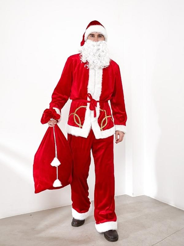 Костюм Санта Клаус Тканина велюр На модели 44 - 48 размер. В комплект входить : Шапка, борода, мешок, Пояс, костюм. 44 - 48, 50 - 56 Брюкина