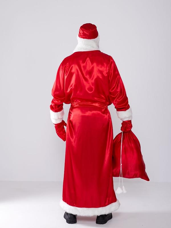 Дід мороз арт. vl. Тканина: атлас В комплекті: халат, шапка, борода, рукавички, мішок, пояс із атласної тканини Розмір: універсал 44-54 (Довжина 150 см, об'єм до 150 см)
