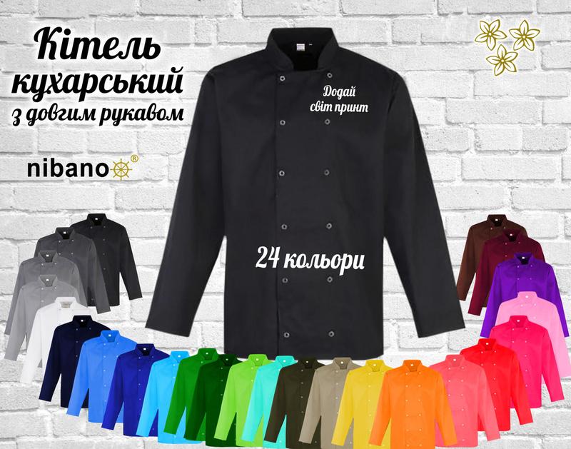 Кітель кухаря nibano з довгим рукавом та з вашим принтом, логотипом (китель повара)