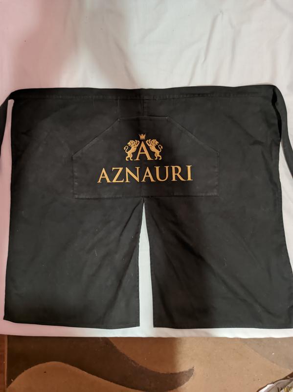 Фартук пригоден, размер 81х71. Надпись можно легко убрать: либо опороть карман, либо перевернуть его и пришить изнаночной чистой стороной. Цена за один. Имею таких пятку. За все оптом двести тридцать гривен. Считайте задаром. Ткань качественная, плотная.