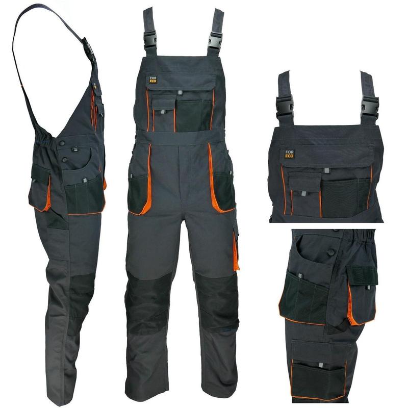 - Брюки защитные на лямках FORECO Reis - 80% полиэстер, 20% хлопок - грамматура 260 г/м² - резинка в поясе в задней партии повышает свободу движения и позволяет лучше подогнать одежду по фигуре - возможность регулирования длины при помощи лямок - многочисленные карманы, в том числе два на груди, застегивающиеся на липучку, два по бокам, сзади два кармана застегивающиеся на липучку, на штанине карман для инструментов и боковой карман, застегивающийся на липучку - на коленях дополнительные карманы для наколенников - хлястик для пристегивания ключе