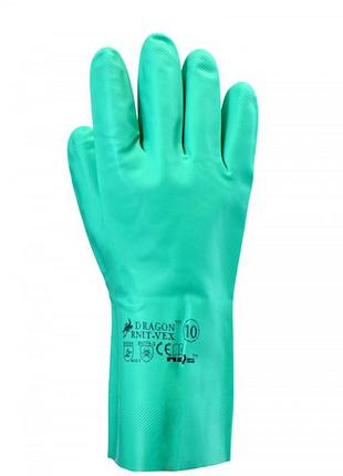 Захисні рукавички, виготовлені з нітрилового каучуку. - хапальна частина має шорстку структуру, завдяки чому рукавички набувають кращої чіпкості; -стійкіші до розривів і проколів в порівнянні з рукавичками з натурального латексу і вінілу стійкість і надійний захист від усіх використовуваних розчинників; - нітрил збільшує стійкість до мастил, олій, жирів та вуглеводнів; - чудово служать у місцях, де відбувається контакт із вищеназваними субстанціями; - відповідають вимогам норм EN388 (рівні стійкості: 4001), EN374-2 та EN374-3 (KLA)
