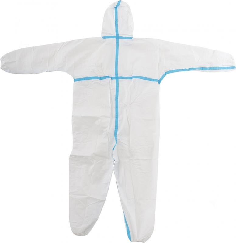 Комбинезон химзащиты для использования в случаях контакта с радиоактивными частицами, ограниченным количеством брызг химикатов, токсичной пылью и туманами, выделяющими химикаты. Для частей тела (руки, лица, ноги), не покрытые защитной одеждой, необходимо подобрать средства, обеспечивающие адекватный уровень защиты. Перчатки должны укрывать эластичные манжеты на рукавах. Изделия снабжаются нестерильными. Перед началом эксплуатации комбинезон проверяют на целостность материала и соединений, при обнаружении повреждений его эксплуатация запрещается. Материал состоит из двух слоев, соединенных клеевым способом. Застежка - молния + клейкая лента. Материал состоит из двух слоев, соединенных клеевым способом. 1-й слой: термоскрепленный нетканый материал СпанБел; 2-й слой: специальная полиэтиленовая пленка. Преимущества и отличительные особенности комбинезона: - не токсичный; - не вызывает аллергических реакций; - устойчив к действию кислот и щелочных соединений; - материал легкий; - ламинированное покрытие материала полипропиленом. Плотность ткани - 63 г / кв.м.
