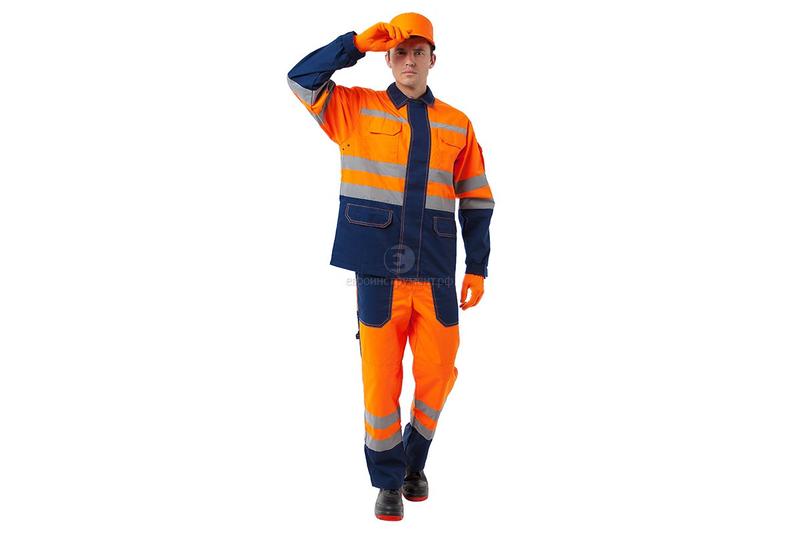 Сигнальный костюм повышенной видимости "Маяк" состоит из куртки и полукомбинезона синего и оранжевого цветов. Идеален для использования при проведении работ в условиях недостаточной видимости. Полное соответствие ГОСТ Р 12.4.219-99. Особенности сигнального костюма Маяк размер 52-54, рост 170-182: - материал - ткань европейская смесовая, плотность 210 г/м2; - состав - 35% хлопок, 65% полиэфир; - куртка с центральной потайной застежкой на молнию, с притачной ветрозащитной планкой, застегивающейся на контактную ленту; - двухрядные светоотражающие ленты шириной 25 и 50 мм; - полукомбинезон на бретелях с застежкой на фастексы, застежка гульфик на петли и пуговицы в среднем шве и на пуговицы в боковом шве