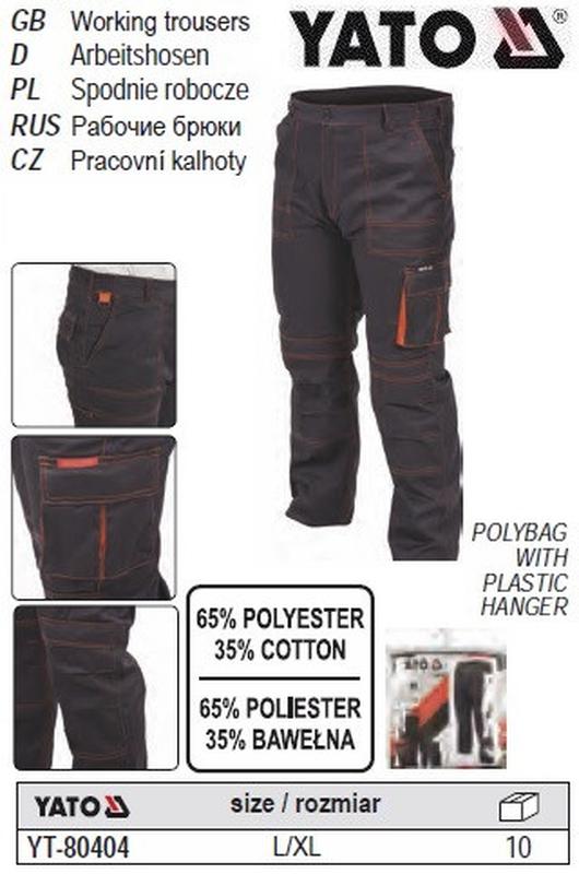 Штани робочі yato польща розмір l-xl 65%/35% поліестер/бавовна yt-80404