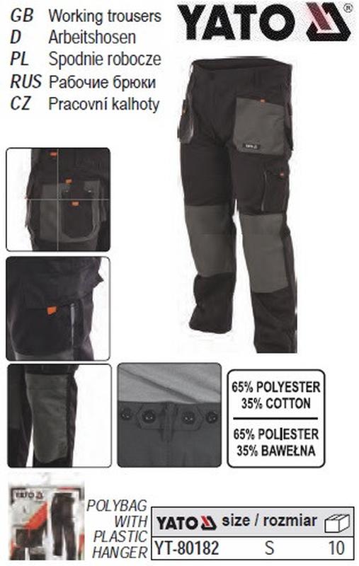 Штаны рабочие yato польша размер s 65%/35% полиэстер/хлопок yt-80182