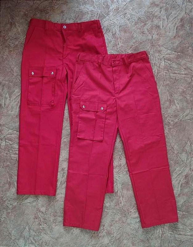 Новые. Размер 50 (М/L). Замеры: полуобхват пояса 45см (есть возможность регулировки при помощи резинки), полуобхват бедер 53см, общая длина 107см, расстояние от пахового шва к низу (шаговая длина) 79см, ширина штанины в нижней части 24,5см, расстояние спереди от пояса до пахового шва (посадка) 31см. Материал: 60% хлопок, 40% полиэстер. Цвет: красный. Цена указана за штуку.
