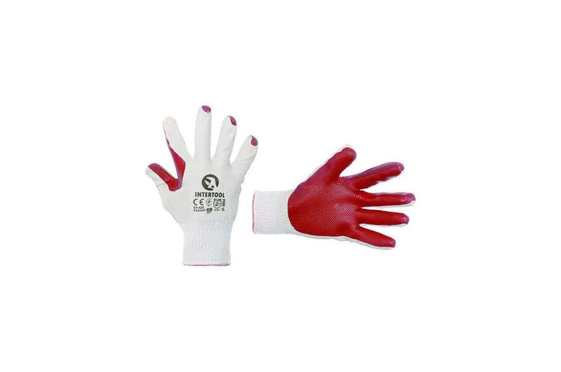 Перчатки intertool - стекольщика латексная 10" (красная) 6 шт.
