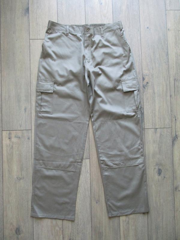 Довжина 108 см довжина від паху 80 см півобхват пояса 45 см, тягнеться до 46,5 см півобхват бедер 61 см півобхват штанини знизу 24 см колір бежевий дві кишені спереду прості. Ззаду та на бедрах по дві на ліпучках. Сток, без слідів носіння. Є 15 штук однакових