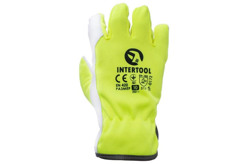 Перчатка intertool - комбинированная козья кожа флуоресцентная зеленая 10" от магазина sty...