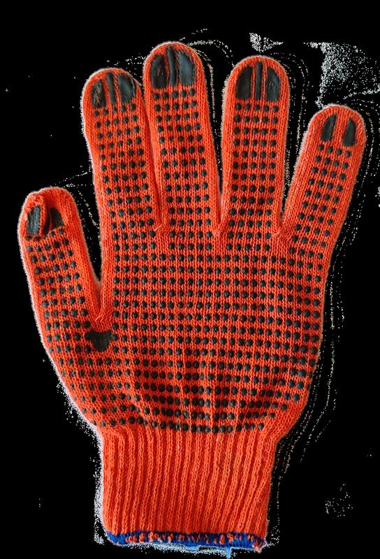 Материал: полиэстер - 30%, хлопок - 70% Описание товара: Класс вязки: 7 класс, 2 нити Цвет нити: оранжевый Цвет ПВХ: черный Перчатки вязанные:защищают руки от незначительных механических повреждений, загрязнения и истирания, а также от не комфортных для работ температур. Надежность и прочность перчаток зависит от класса вязки и количество нитей. Нанесения на перчатки слоя ПВХ обеспечивает большую износостойкость и прочность. Перчатки не имеющие напыления ПВХ подойдут для простых работ, где нет опасности скольжения рук. Перчатки с ПВХ напылением подойдут для большинства складских и бытовых задач. Хлопчатобумажная нить не вызывает аллергических реакций и отлично пропускает воздух, благодаря чему руки во время работы находятся в комфортных условиях работы. Индивидуальная защита рук - это не только средство индивидуальной защиты рабочего внутри технологического процесса но и средство защиты рук в быту при выполнении работ дома и в саду. При выполнении любых видов работ существует высокая вероятность получение повреждения кожи механически (прокол, порез), химически (раздражение, аллергия, ожог), термически (ожог). В эту категорию входит комплекс средств для защиты рук от внешнего физического, механического, химического, термического воздействия. Это однопалые рабочие рукавицы пошитые из разных видов брезента, ткани, джинсы, комбинированные варианты. Рабочие пятипалые перчатки, вывязанные из синтетических и натуральных нитей в разном процентном соотношении, с нанесением ПВХ на ладонь и без нанесении ПВХ. Краги замшевые для сварщика различной длины и толщины замша, цельные либо комбинированные с джинсовой тканью. Вачеги пошитые из замша для литейных производств. Новая категория для нашей страны в категории защиты рук - это защитные, восстанавливающие регенерирующие крема. Защитный крем наносятся на рабочую поверхность руки и при высыхании образуется тонкая защитная пленка устойчивая к химическому воздействию различных веществ. в последствии при контакте с проточной водой и моющим средством пленка смывается оставляя руки чистыми. Рекомендуется после работ нанести питательный либо восстанавливающий крем. С популяризацией в нашей стране экстремального спорта, вело туризма, тактических игр. Получила развитие категория спортивных перчаток изготовленных из современных технологических материалов обеспечивающих безопасность и комфорт. Все перчатки и рукавицы соответствуют разделяются по классу защиты указанным в допусках и ГОСТах. класс защиты указан цифрами.