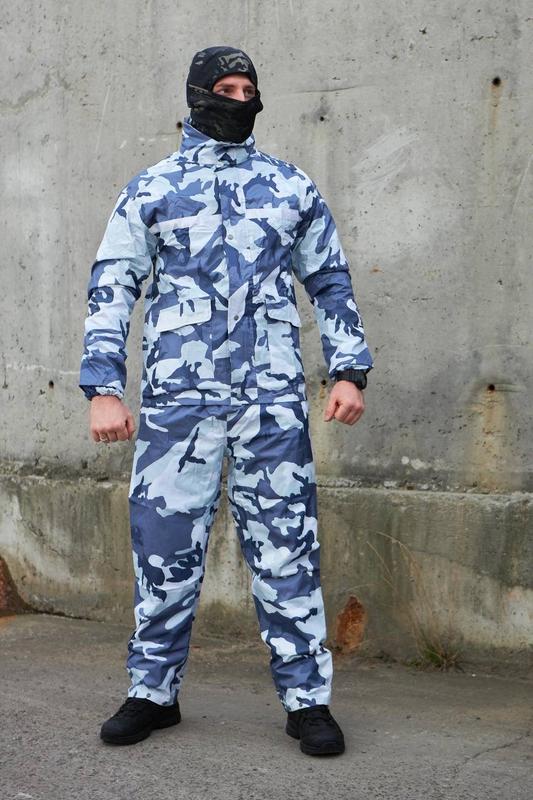 Зимний маскировочный костюм бело-синий, непромокаемый