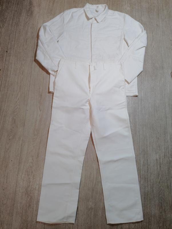 костюм рабочий H.Schurr Pfullingen.размер 52 новый ФРГ плотна ткань 65 процентов полиэстер 35 хлопок куртка замеры плечи 51 см рукав 65 см грудь 66 см низ 65 см высота 77 см штаны замеры талия полуобхват 48 см бедра 55 см высота 111 см шаговый шов 78 см