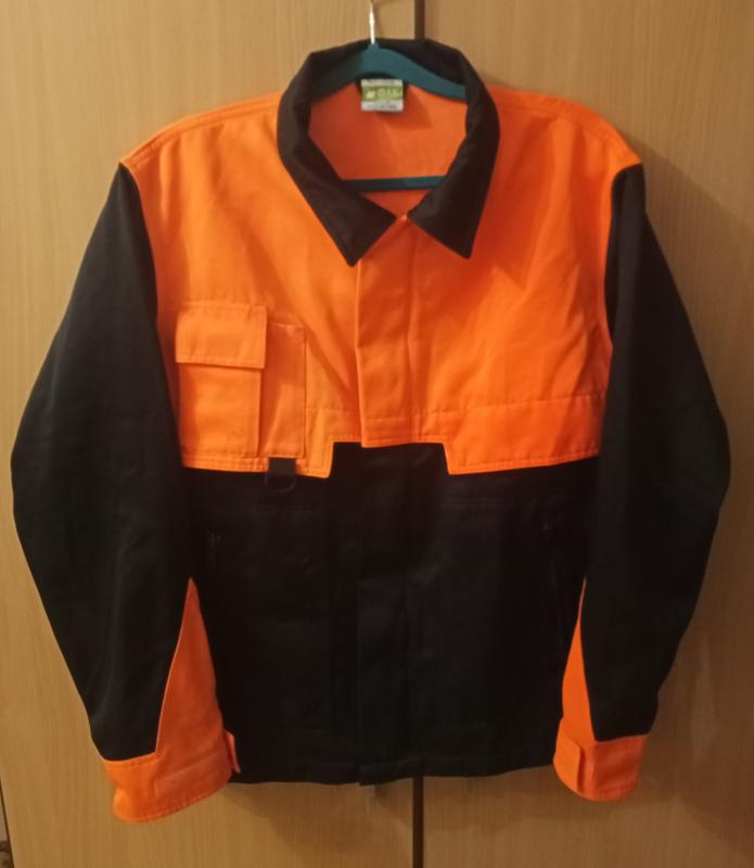 Одежда для защиты от порезов цепной пылью: 9 уровней защиты! Специальная одежда для работников лесного хозяйства и прокладка просек для электросетей предназначена для обеспечения защиты от случайного пореза ручной цепной пилой (защита при линейной скорости цепной пилы не более 20 м/с). Вся одежда серии Oak разработана для экстремальных внешних условий работы на открытом воздухе, включает превосходную защиту, воздухопроницаемость и комфорт. Включает эластичные ткани в ключевых областях для большей легкости движения. Благодаря водоотталкивающему материалу и практичным карманам эта одежда позволяет всегда хорошо и эстетично выглядеть и полностью быть защищенным. Вся одежда серии Oak была протестирована и сертифицирована в соответствии с EN 381-5:1995 Класс 1. · Куртка с центральной потайной застежкой. · Регулируемые застежки-липучки на манжетах рукавов. · 6 карманов, в том числе штормовой передний клапан. · UPF 50+ - ткань верха блокирует до 98% ультрафиолетовых лучей, попадающих на одежду. · Материал верха: 65% полиэстер, 35% хлопок, ВО отделка, плотность 245 г/м2. · Соответствует: EN 381-5:1995 Класс 1, одобрен KWF (Европейской ассоциацией сотрудников лесного хозяйства). · Размер: M. · Цвет: черный/оранжевый. Состояние новой вещи. Е небольшие загрязнения, виден на последнем фото.