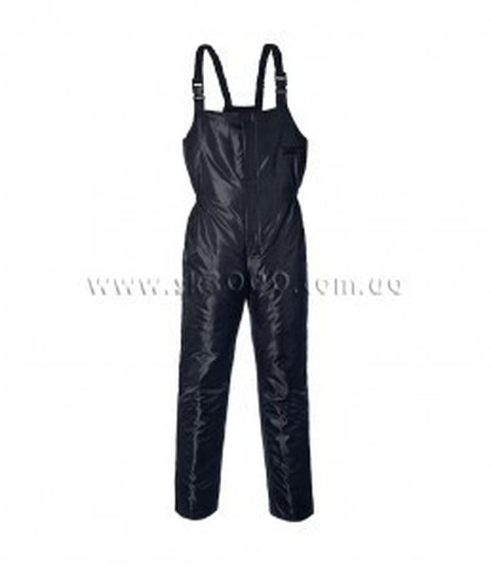 Напівкомбінезон утеплений "Патруль" - прямий, з нагрудником на шлейках, який застібається на блискавку, яка прикрита вітрозахисною планкою. Шлейки на карабінах. Довжина шлейок регулюється додатковими рамками. Через трикутну вставку та широку гумку шлейки напівкомбінезону з'єднуються зі спинкою. Накладні бічні кишені, з косим входом. Для захисту та підсилення, в ділянці колін нашиті наколінники. Для зручності експуатації, по лінії талії вставлено внутрішню гумку. Тканина: Оксфорд(100% синтетика, водовідштовхуюче просочення). Утеплювач: один шар синтепону. Підкладка: поліестер. Колір: чорний.