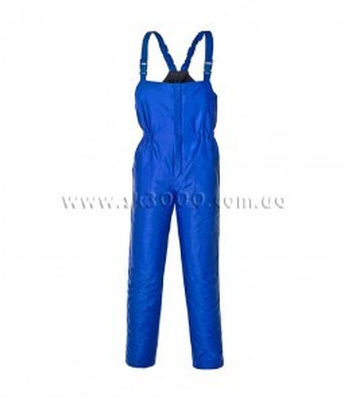 Напівкомбінезон утеплений "Технік" - прямий, з нагрудником на шлейках, який застібається на блискавку, яка прикрита вітрозахисною планкою. Шлейки на карабінах. Довжина шлейок регулюється додатковими рамками. Через трикутну вставку та широку гумку шлейки напівкомбінезону з'єднуються зі спинкою. Накладні бічні кишені, з косим входом. Для захисту та підсилення, в ділянці колін нашиті наколінники. Для зручності експуатації, по лінії талії вставлено внутрішню гумку. Тканина: Грета. Колір: волошковий. Утеплювач: один шар синтепону. Підкладка: поліестер.