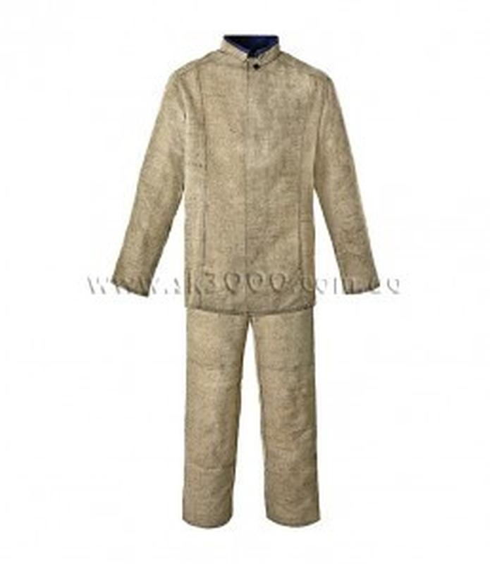 Костюм брезентовий зварювальника(куртка+штани) виготовлений з вогнетривкого брезенту. Призначений захищати робутника від продуктів горіння при проведенні зварювальних робіт. Куртка прямого фасону із закритою застібкою на гудзиках та двома накладними кишенями. Штани прямого фасону з наколінниками, та гульфіком на гудзиках. Приточний почс має шльовки під широкий ремінь
