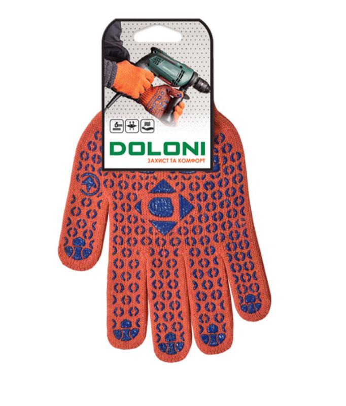 Рукавички "Долоні Універсал" - це трикотажні безшовні захисні рукавички з ПВХ малюнком. Армуюче полівінілхлоридне покриття забезпечує хороше зчеплення з поверхнею, що допомагає міцніше утримувати слизькі предмети, і зменшує навантаження на руки. Рукавиці ХБ з ПВХ надолонником забезпечують захист кистей рук і області зап'ясть від механічних пошкоджень і забруднень. Чим більше сумарна площа ПВХ напилення, тим виріб міцніший. Таке спеціальне покриття продовжує термін служби рукавиць, вони менше протираються. Матеріал рукавичок: 70 ХБ / 30 ПЄ Вид покриття: ПВХ-малюнок Площа обливу: Без обливу Розмір: 10 (XL) Галузь застосування: Загальновиробничі роботи
