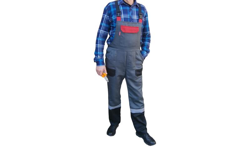 Напівкомбінезон робочий професіонал 1128 комбо сірий зі світловідбиваючою смугою