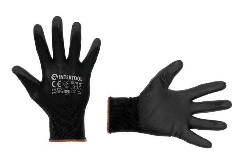 Перчатка Intertool - полиуретановая черная 9"