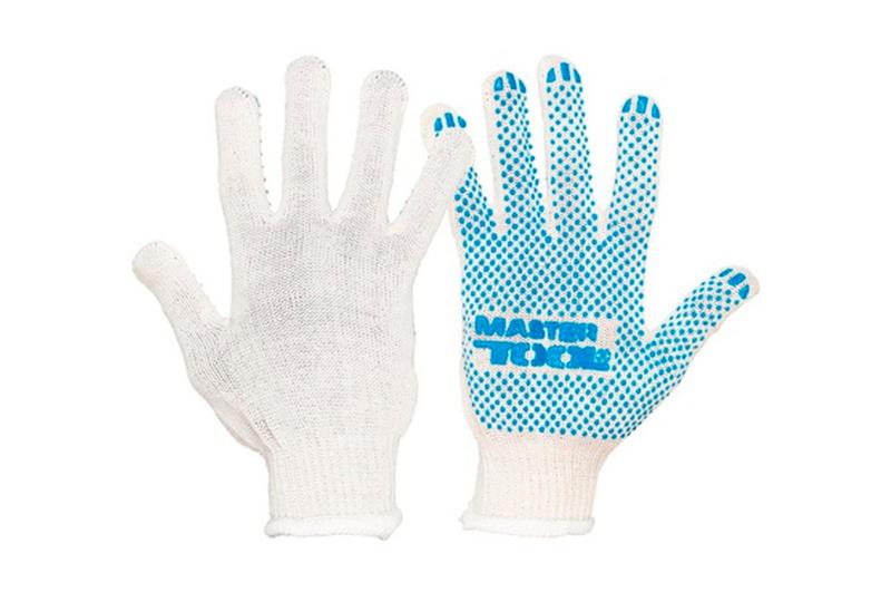 с ПВХ-точками 70% хлопок/30% полиэстер 10 класс 2 нити 40 гр бело-синие