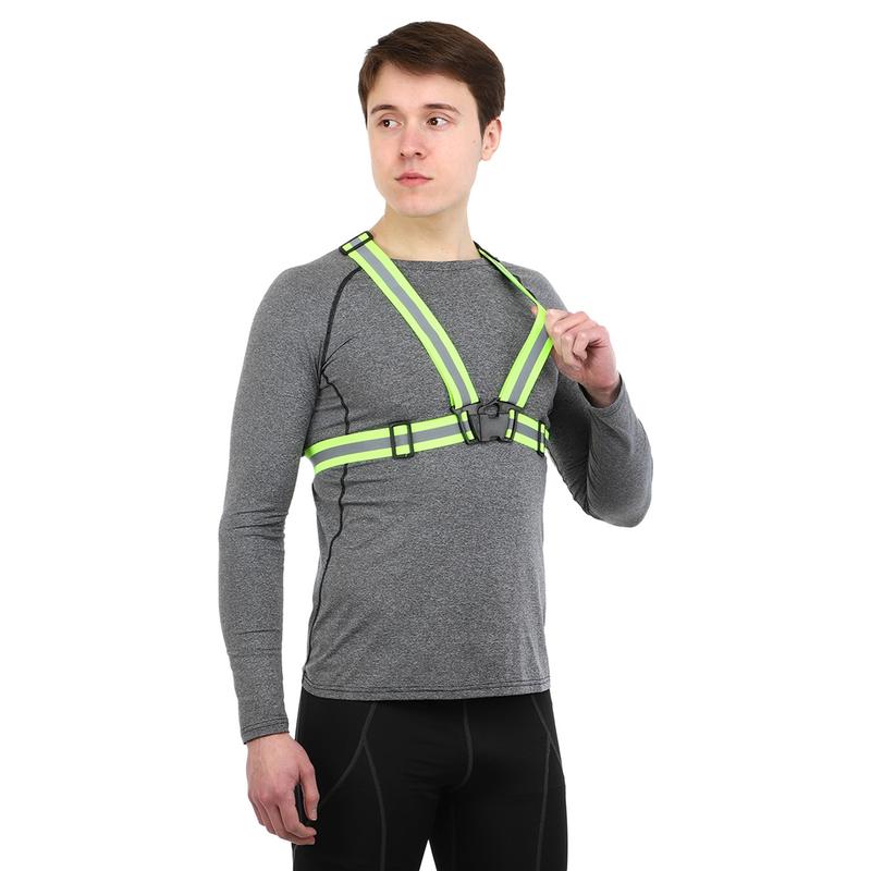 Тип: светоотражающий жилет-пояс. Ширина: 4 см. Длина: 38-55 см. Талия: 66-100 см. Цвет: салатовый. Назначение: для тренировок и прогулок в темное время суток. Жилет для занятий спортом в ночное время изготовлен из светоотражающей ленты. Краска на ленту нанесена методом шелкографии. Жилет имеет универсальный размер. Его можно отрегулировать под параметры тела пользователя и застегнуть на талии на пластиковую застежку. Жилет отражает свет фар и делает бегуна более заметным даже при полном отсутствии уличного освещения. Лента не сковывает движения и не перегревает тело. Преимущества светоотражающего жилета: - Универсальный размер. - Не перегревает тело и не мешает движениям. - Светоотражающие вставки по всему периметру жилета.