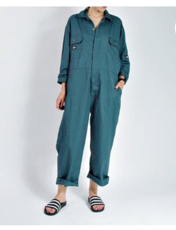 Отличный комбинезон механика от DICKIES Винтаж 1990-х Самый культовый предмет одежды для андеграундных субкультур Очень популярен в 90-х (хип-хоп культура) и даже в 00-х (посмотрите на Slipknot) Удобная форма, повседневный вид Ткань цвета морской волны Отличная вещь для фестивалей, классная одежда в уличном стиле Это, конечно, мужские комбинезоны, но если вы женщина, они отлично смотрятся в образах бойфренда (так как оверсайз)! РАЗМЕР Мужской размер L, женский размер пожалуйста, проверьте мерки ниже Девушка на фото размер М пог 65 пот 54 тянется резинка сзади до 60 поб 68 Плечи 54 Рукав 58 Длина до талии 53 Длина изделия 150 Длина по боковому шву 123 Длина от талии 100/65 ширина штанини 39/26 есть загрязнение спереди, незаметно обмен и возврата НЕТ пересылка новой или Укрпочта