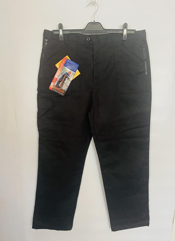 Длина 108 см, талия 48 см, бедра 63 см, шаговый шов 75 см, высота посадки впереди 39 см, сзади 41 см. Износостойкая ткань.