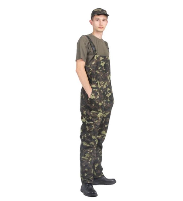 Верхняя часть отстегивается, получаются брюки. Карманы по бокам, спереди, сзади. Абсолютно новый комбез.