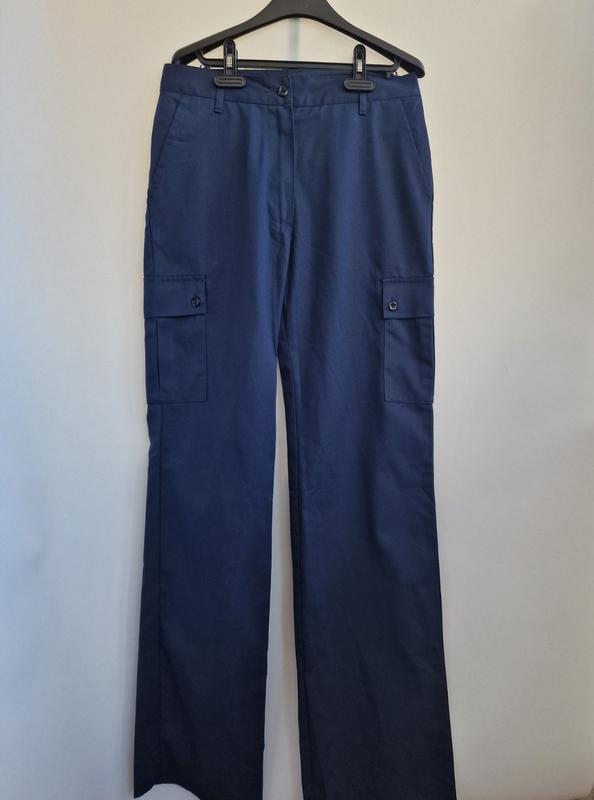 Рабочие штаны карго мужские темно-синие французского бренда Sodexo. Размер UK10, наш ориентировочно 44-46. Смотрите замеры. 65% полиэстер, 35% хлопок. Качество отличное. Выглядят очень стильно. 6 карманов. Внизу идут не подрубленные. Штанины прямые. Длина 115 см шаг 89 см полуобхват талии 38 см, не тянется полуобхват бедер 47 см посадка 27/35 см.