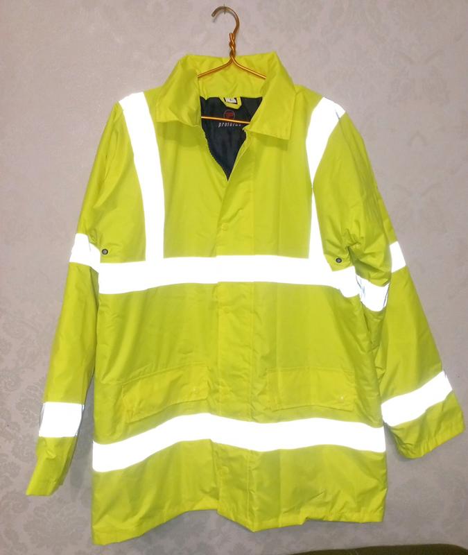 Продам светоотражающую куртку, мужскую, рабочую одежду-Hi-Vis Jacket Proforce ярко-лимонного цвета. Foul Weather, водоотталкивающая, для непогоды. Размер L Есть прослойка утеплителя, резинки в рукавах, съемный капюшоном, карманы. Отличное качество. Дополнительные мерки отправь на запрос. Фактически, новое состояние куртка одевалась 1 раз. Единственный нюанс – небольшие потертости на светоотражающей вставке, их почти не видно, только под определенным углом (последнее фото). Быстрая отправка Укрпоштой и Новой почтой.