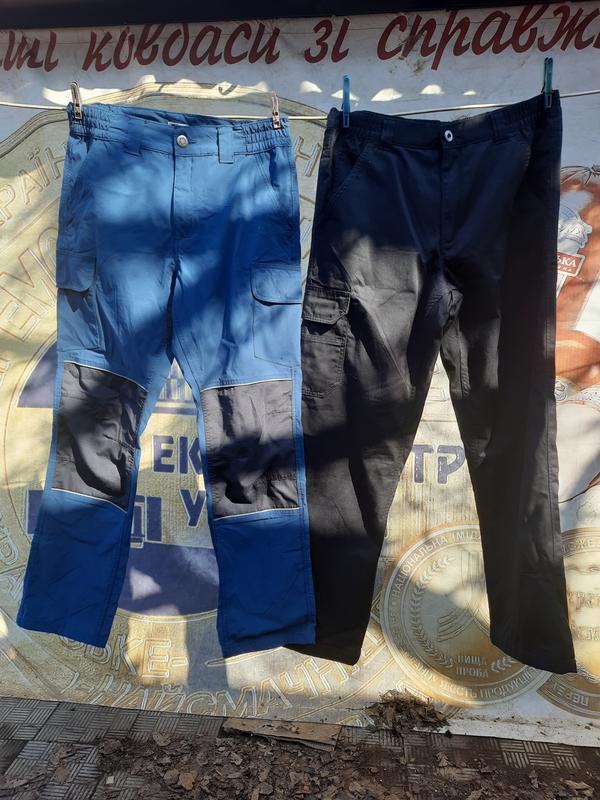 Предлагаются 3 пары рабочих штанов.Розные. Черные брюки с серыми вставками из завода Мерседес.Размер 46.Пот 41см,жно сделать меньше за счет резинки на талии сзади.Длина 102 см.На коленях двойная ткань.Спереди 2 кармана, сзади 2 кармана.По бокам 1 большая, большая, дрная для инструмента. Стан б/в,но очень хороший.По недостаткам на правом колене стерта светоотражающая краска.Нема пуговица спереди.Блеска толстая,пластиковая.Працевает.Самость 420 гривен. Черные брюки написаны размер 50/34. Утепленные.Новые.Металевая тракторная молния.Красные 2 спереди,2 сзади и один справа сбоку. банала на липучке и снизу этого кармана еще открыт для инструмента. Замеры ПОТ 42,5 см в спокойном состоянии,тянутся до 46 см.В шагу 36,5 см, длина 108 см. Стоимость 800 гривен. Синие брюки без утепления. Очень красивая ткань,типа плащевки.Размер 48.Фирма King Kraft.Два кармана спереди сверху,два кармана сбоку на липучках.Две карманы сзади-одные на липучке,одина открытая. На коленях ткань другой фактуры и цвета.Штаны отделаны светоотражающими полосками спереди и сзади на боковых карманах. Замеры Пот 40-43 см,шаг 34, длина 105. Из недостатков-е немного пятен спереди от смазки.В другом состоянии нормальний.Не протертые, не рваные. Стоимость 450 гривен. Дополнительные фото по запросу.