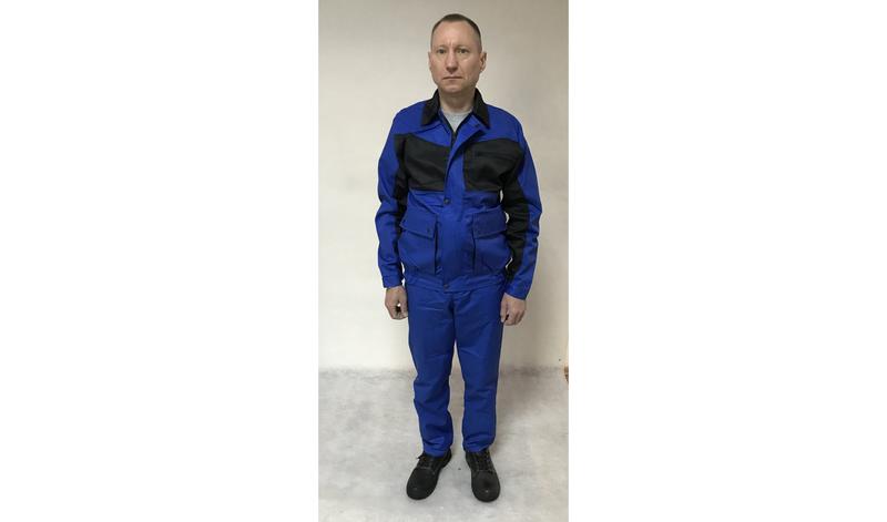 Костюм рабочий "Новатор". Куртка + полукомбинезон, ткань - грета. Костюм рабочий Новатор Куртка низ на резинке, на молнии с планкой застегивающаяся на кнопках. Нижние карманы накладные с клапанами. Верхний карман внутренний на молнии. Отрезная фигурная кокетка впереди и сзади. Рукав на кнопках, разрезной двух цветный. Брюки с накладными боковыми карманами по бокам, гульфик на молнии.